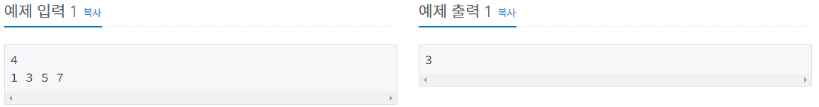 첫 줄에 수의 개수 N이 주어진다. N은 100이하이다. 다음으로 N개의 수가 주어지는데 수는 1,000 이하의 자연수이다.