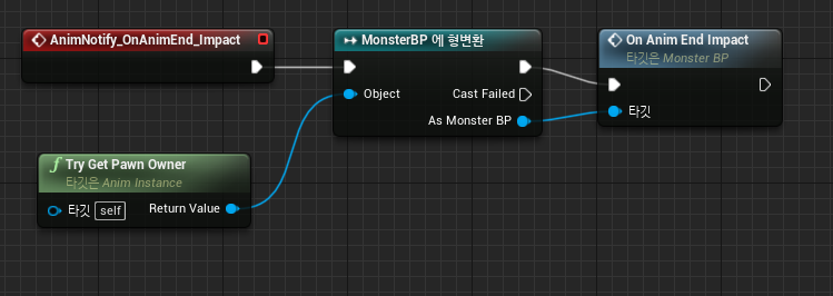 Monster BP의 On Anim End Impact로 형변환 해준다