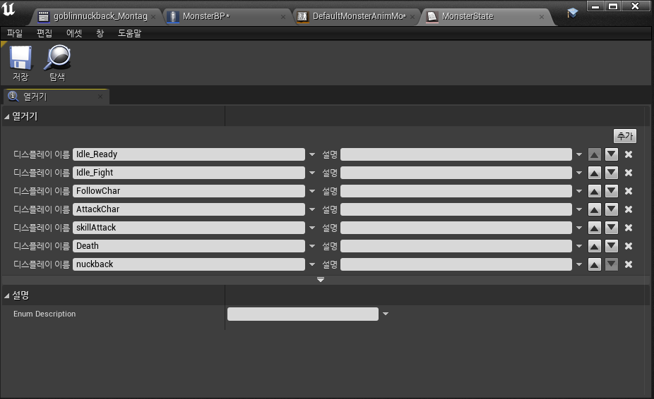 몬스터 상태 열거형 변수에는 nuckback변수를 추가해 맞았을 때 상태를 추가한다