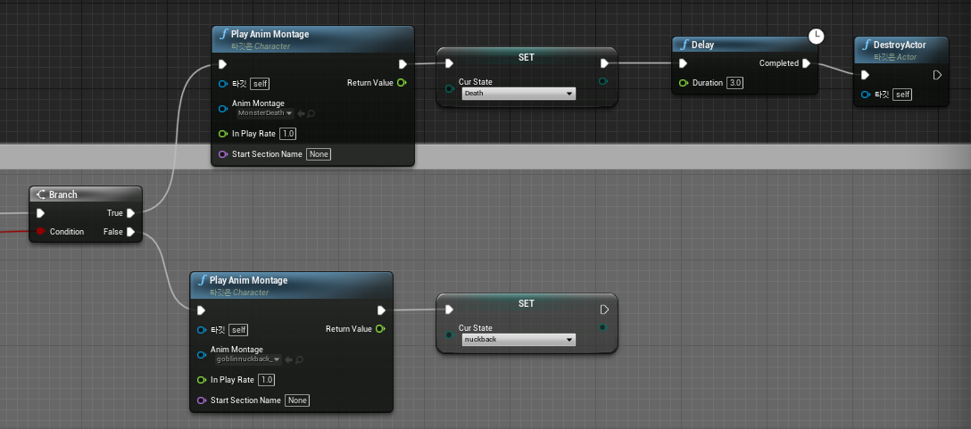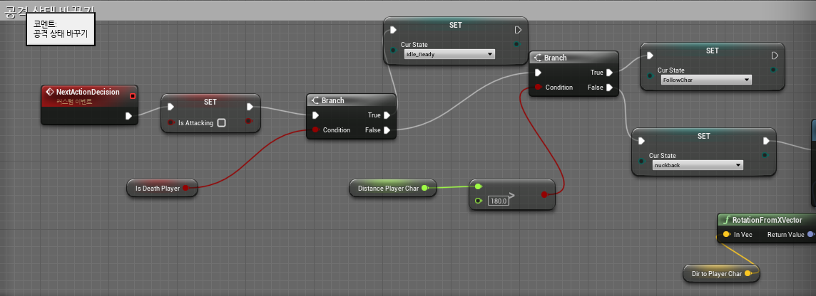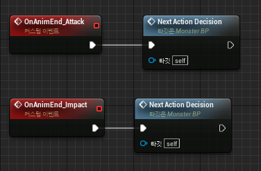 몬스터의 상태를 바꾸는 노드에는 새로운 커스텀 이벤트 NextActionDecision으로 묶어주고