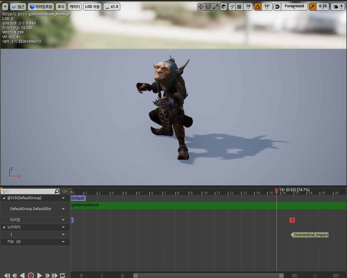 넉백 애니메이션 몽타주에서 새로운 노티파이를 설정하고