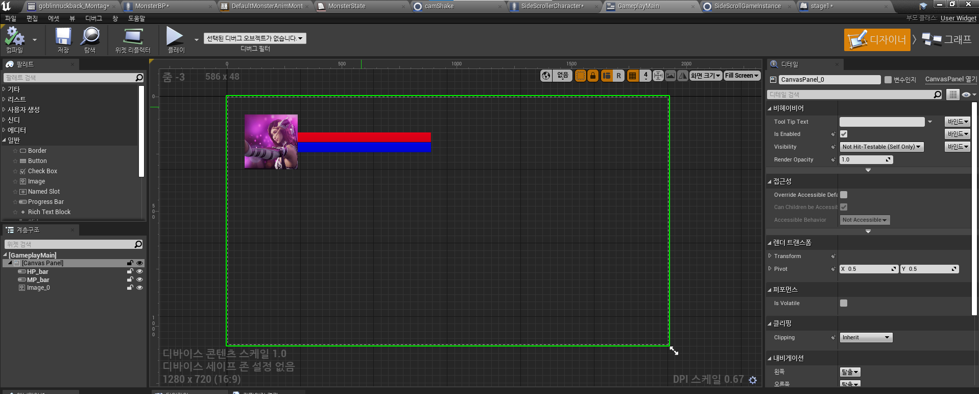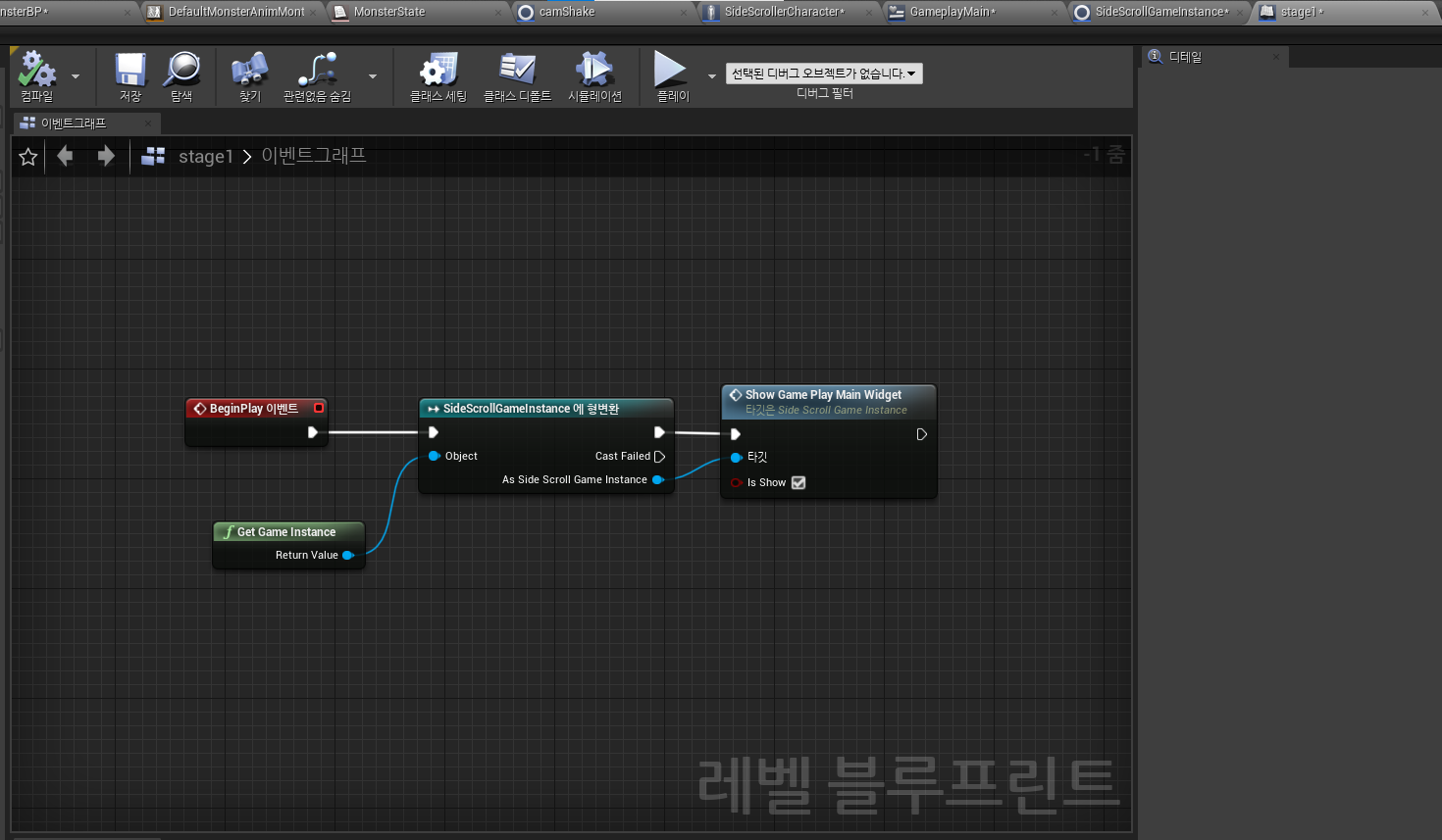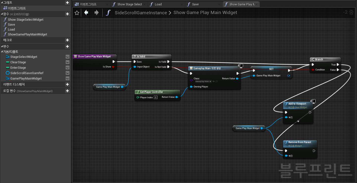 그리고 sidescrollgameInstance에서 함수 ShowGamePlayMainWidget을 하나 생성한다.