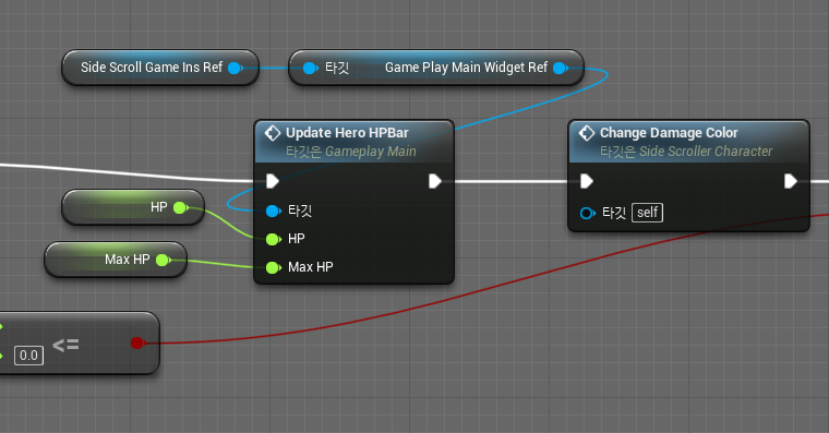 그리고 현재 Game Instance 의 방금 생성한 Main Widget의 함수 Update Hero HPBar 에 현재 HP와 전체 HP를 연결해준다