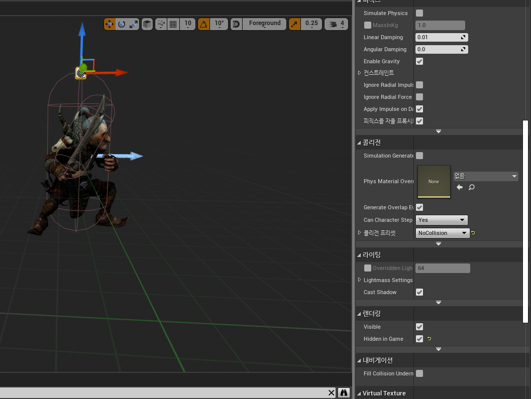 더미 큐브는 렌더링->Hidden in Game을 통해 실제 게임에선 안보이도록 한다