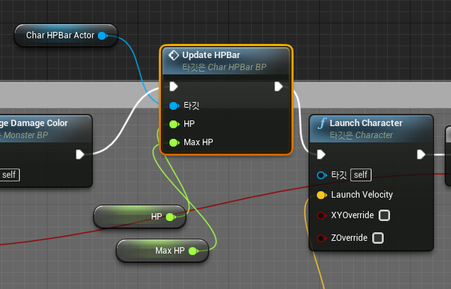 그리고 몬스터가 피격당해 hp가 깍이는 부분을 찾아 update HPBar노드를 추가해주면 된다