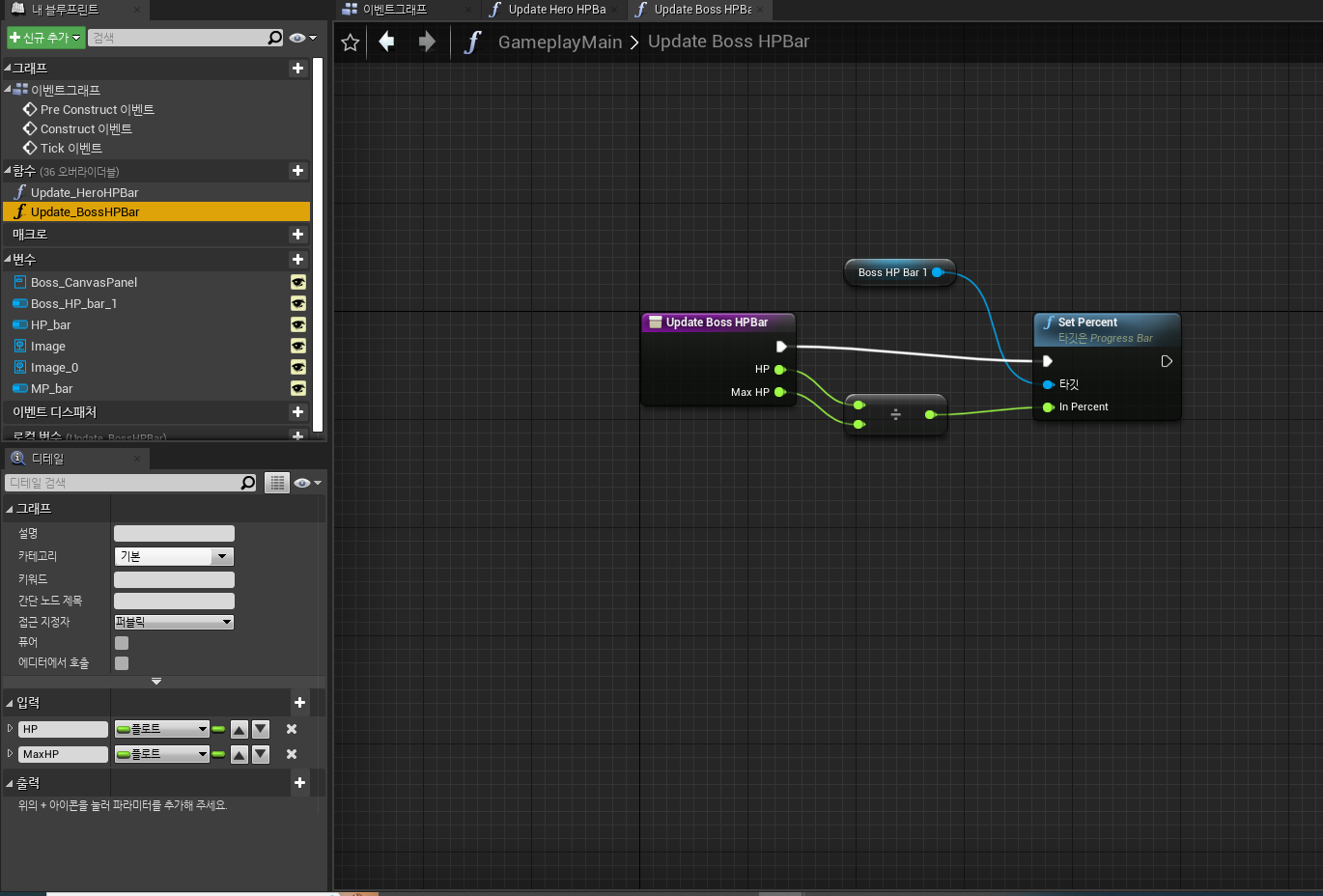 그리고 그래프로 넘어가서 보스 HPBar를 현재 hp,최대 hp에 따라 변동하도록 함수를 생성한다