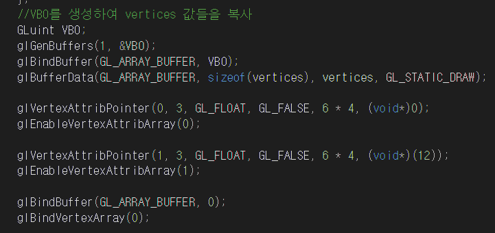 glBindVertexArray(VAO);//미리 설정한 vao를 그리기 위해 바인드한다