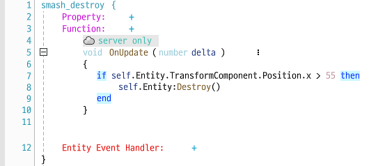 Onupdate함수에서 매 틱마다 0.2만큼 x좌표를 이동하고 x좌표가 60(맵의 끝)을 넘어가면 더 이상 이동하지 않도록 한다.