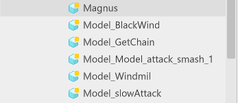 4개의 패턴이 발동되면 각각 BlackWind, attacksmash, windmil,slowAttack 모델이 생기게된다.