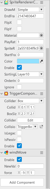 먼저 현재 맵에 새로운 컴포넌트를 추가해준다. 그리고 프로퍼티를 다음과 같이 추가한다. magnus는 보스 캐릭터를 받아온다 smashPos는 날아오는 검기의 위치를 가져온다. windpos는 날아오는 회오리