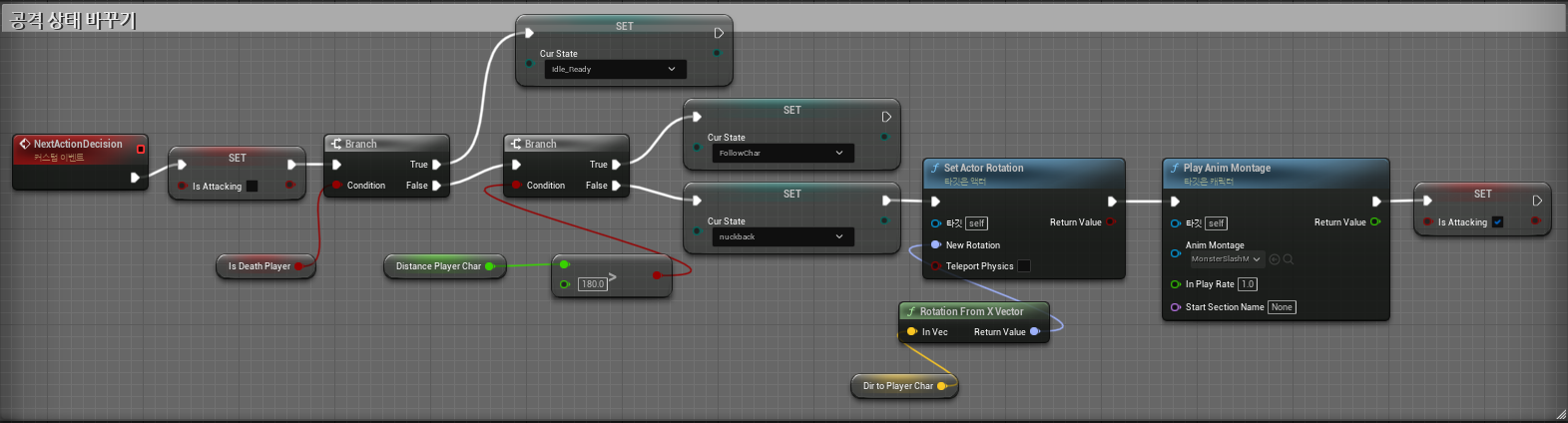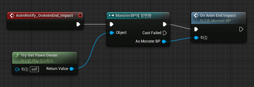 다음과 같이 새로운 커스텀 이벤트를 생성하고 기존 OnAnimEnd_Attack에 연결되어 있던 노드들을 그대로 연결해준다