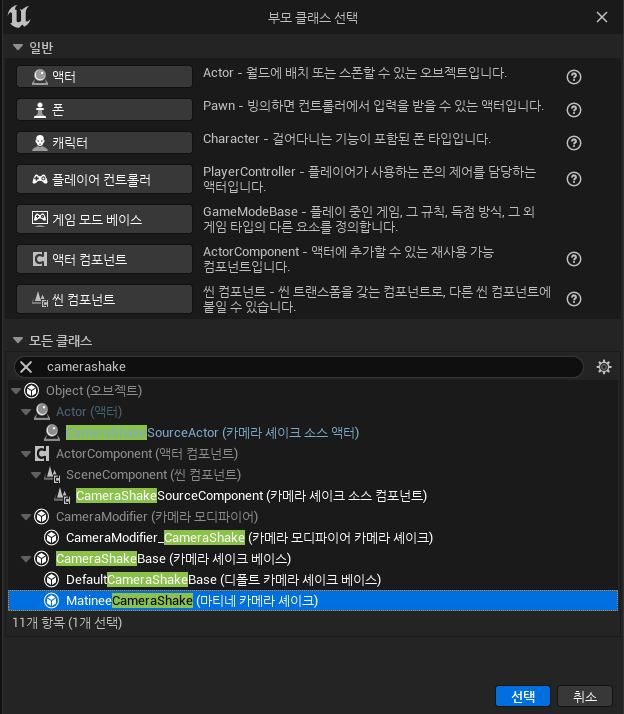먼저 CameraShake 블루프린트를 하나 생성한다