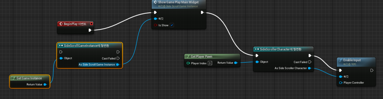 게임 인스턴스로 가서 노드를 다음과 같이 연결한다.