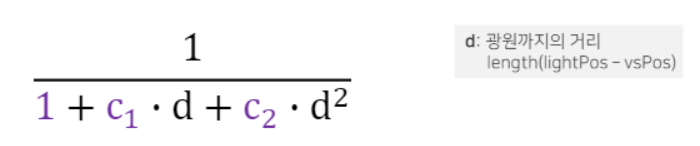 float attenuation = 1.0 / (1.0 + light.c1 * distance + light.c2 * (distance * distance));