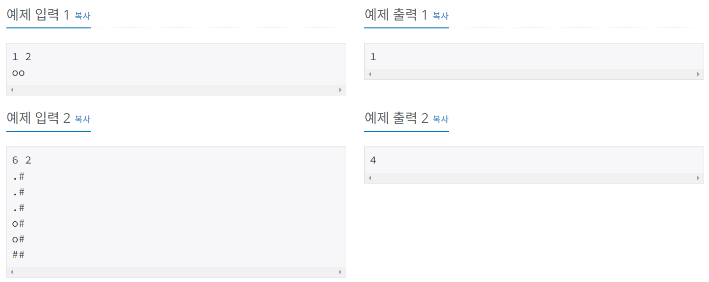 둘째 줄부터 N개의 줄에는 보드의 상태가 주어진다.