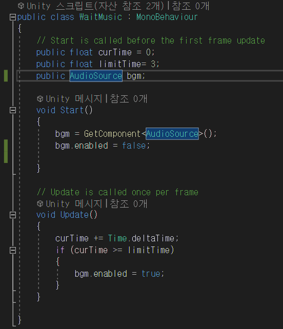 다음과 같은 스크립트를 추가하여 3초 뒤 브금이 실행되도록 하였다.