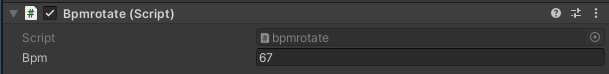 사각형을 늘려 회전하며 bpm을 알 수 있도록 하는 오브젝트를 생성하고 스크립트를 추가한다.