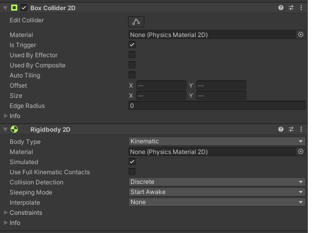 Is Trigger를 체크해주어 플레이어가 해당 경계선에 닿았을 경우 그 이상으로 움직이지 못하게 설정해줄거다.
