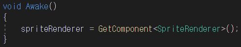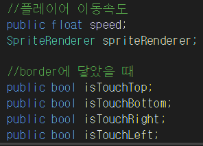 Player스크립트로 가서 변수들을 선언하고 SpriteRenderer변수같은 경우는 컴포넌트를 받아와야 하므로 Awake함수에서 초기화 해준다.