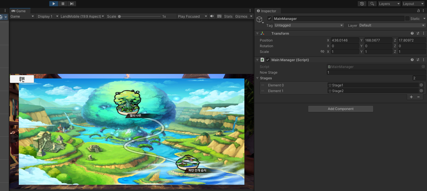 nowStage는 클리어한 스테이지를 저장하며 stages배열에는 맵의 버튼 오브젝트들을 넣는다.