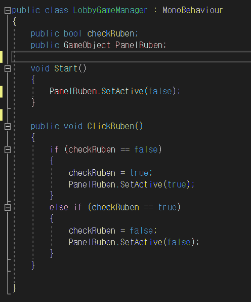 checkRuben bool형 변수를 활용하여 panel의 키고 끄는 것을 제어한다.