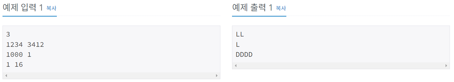 따라서 여러분의 프로그램은 이 경우에 LL 이나 RR 을 출력해야 한다.