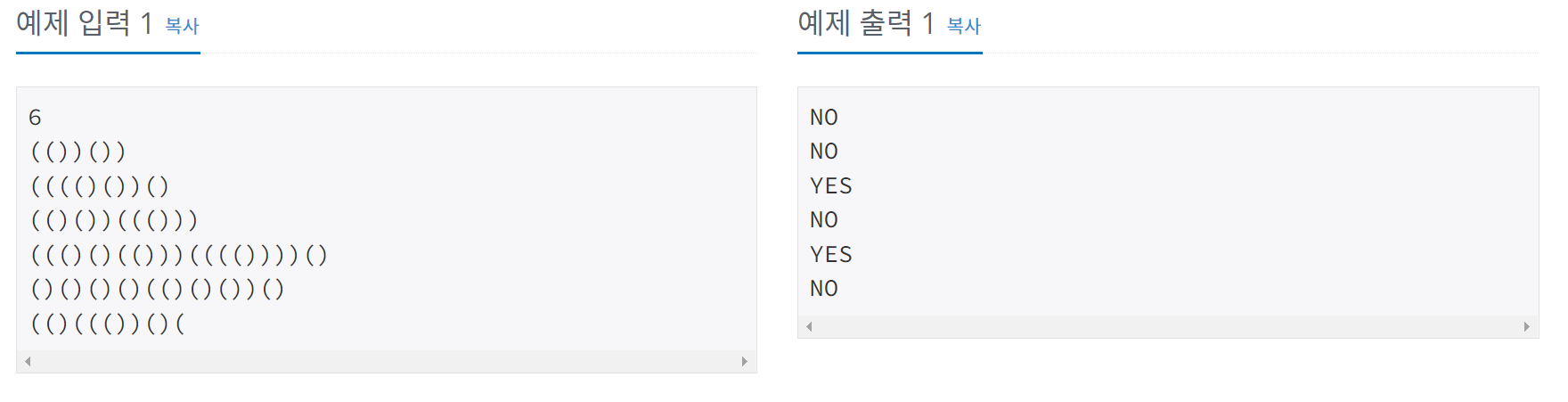 (가 입력됐을 때 cstack 에 push가 되고 )가 입력 됐을 때 cstack이 pop되는 박자가 맞을 때 정상적인 괄호고 YES가 출력된다.