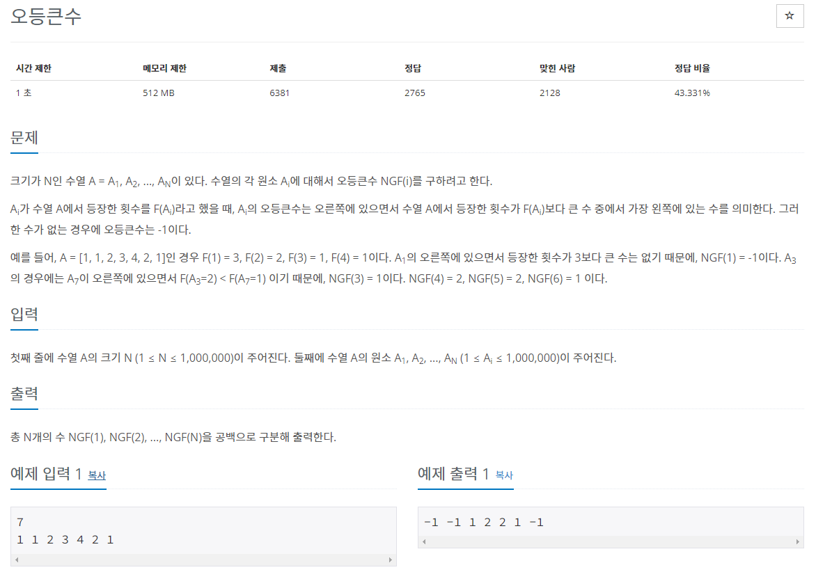 while (!s.empty() && A_count[A[s.top()]] < A_count[A[i]]) //stack 이 비어있지 않고