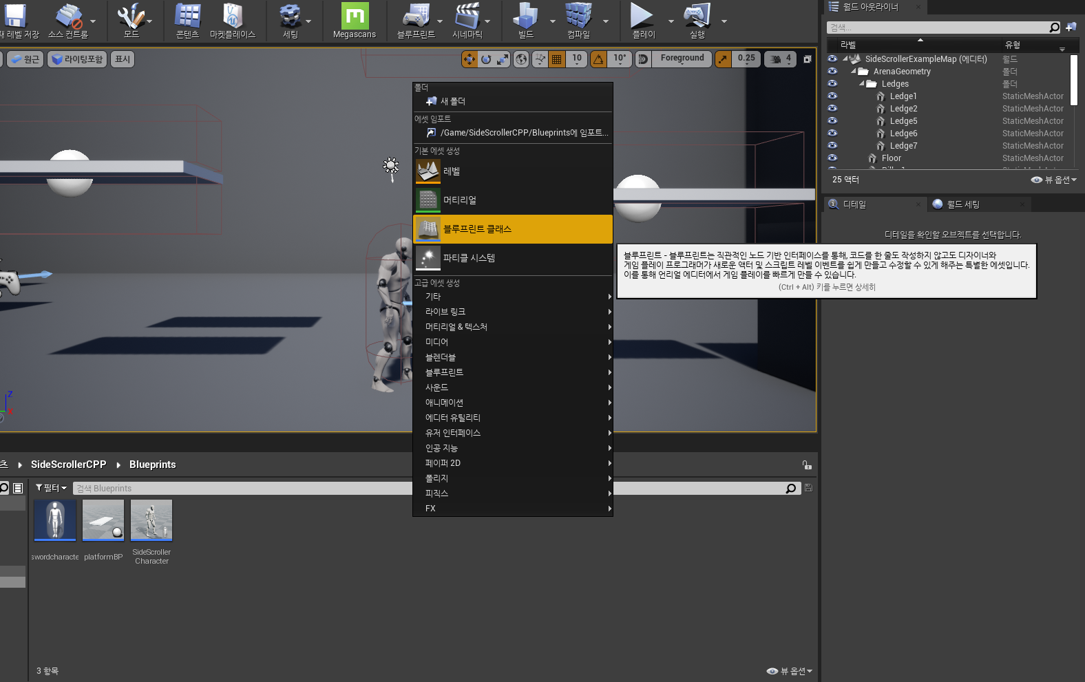 윈도우에 우클릭 한 뒤 블루프린트 클래스 -> 액터를 클릭한다
