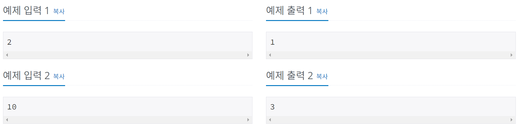 첫째 줄에 1보다 크거나 같고, 106보다 작거나 같은 정수 N이 주어진다.