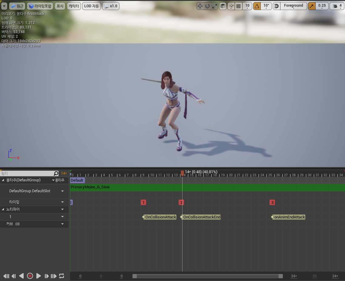 공격 애니메이션 몽타주에서 공격에 콜리젼을 넣을 부분과 끝나는 부분을 각각 새 노티파이로 잡아준다