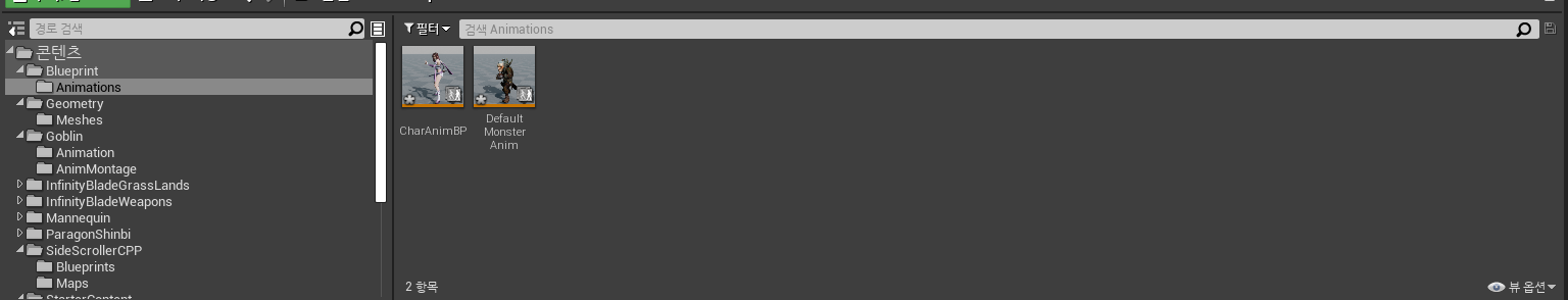 이제 위에 생성한 몬스터 블루프린트->매쉬 에서 애니메이션을 지정해준다
