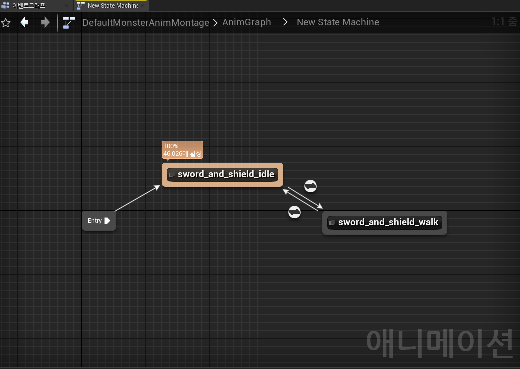 그 다음 NewStateMachine에서 움직이는 애니메이션을 가져와 연결해준 뒤