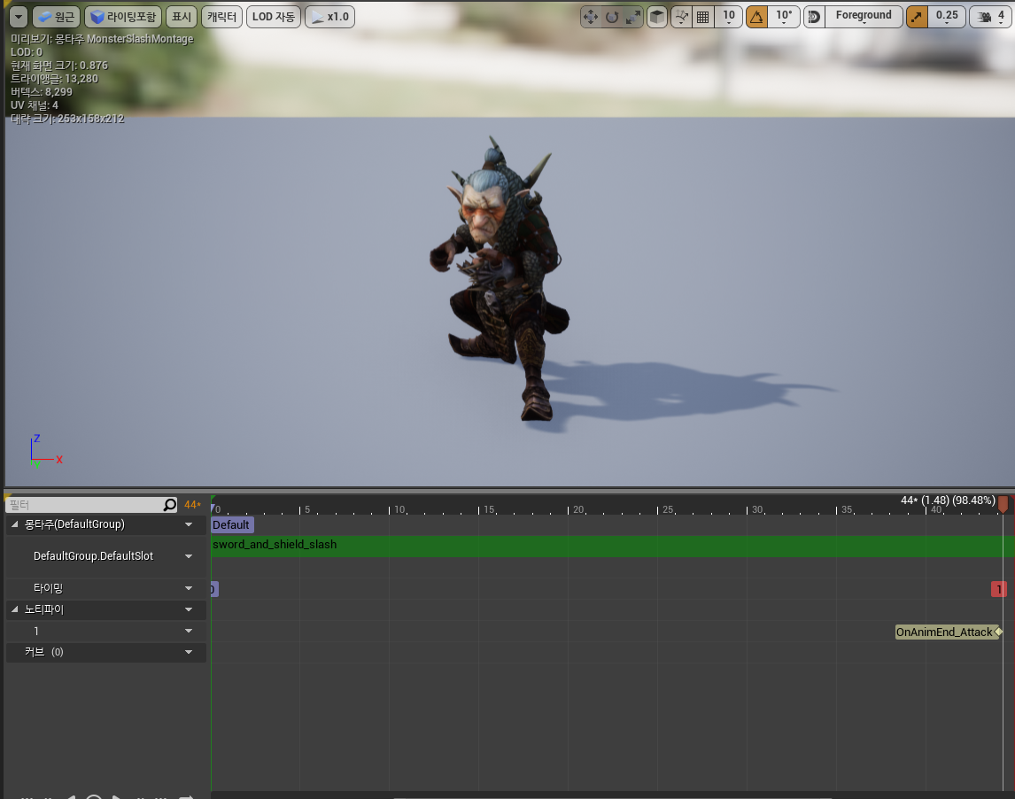 애니메이션에 OnAnimEnd_Attack이라는 새로운 노티파이를 생성하고