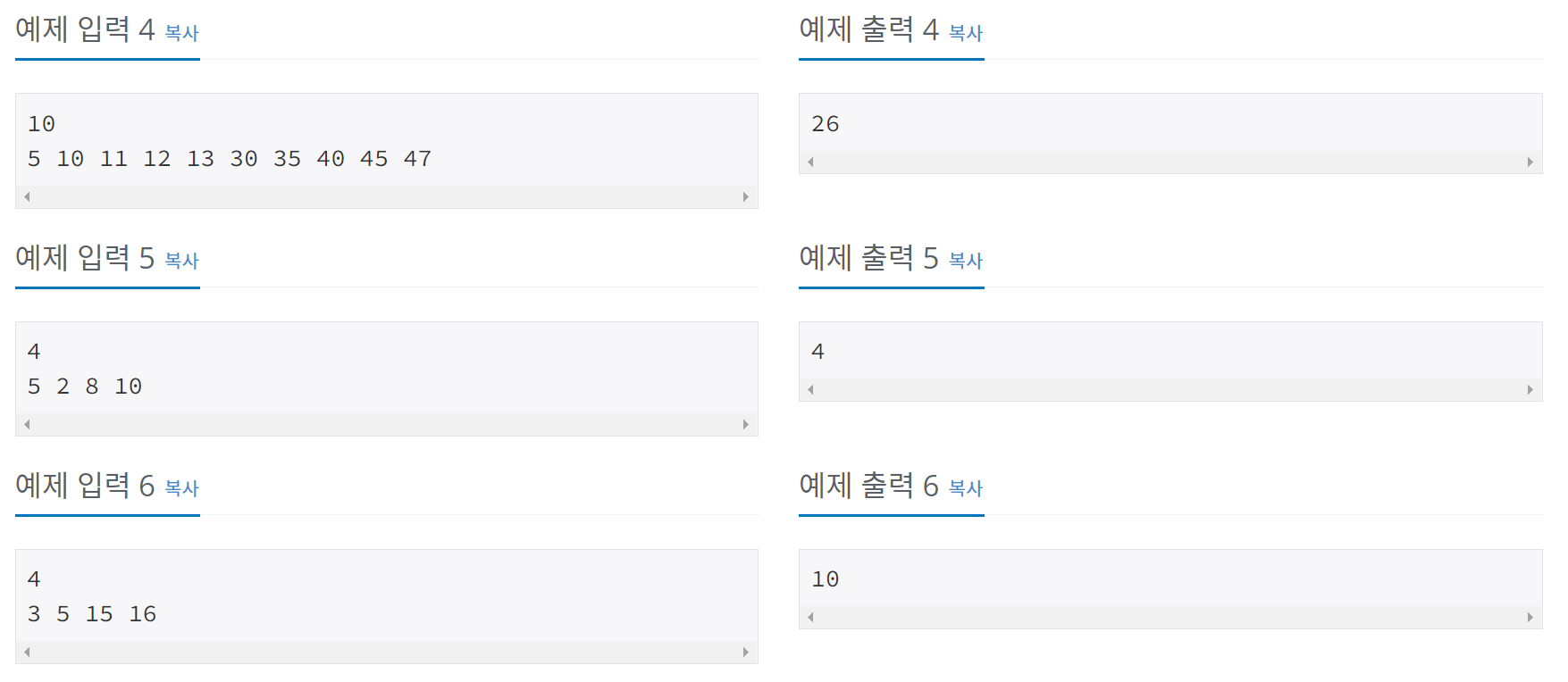 둘째 줄에는 Pi가 P1부터 PN까지 순서대로 주어진다. (1 ≤ Pi ≤ 10,000)