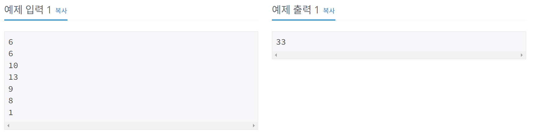 효주는 될 수 있는 대로 많은 양의 포도주를 맛보기 위해서 어떤 포도주 잔을 선택해야 할지 고민하고 있다. 1부터 n까지의 번호가 붙어 있는 n개의 포도주 잔이 순서대로 테이블 위에 놓여 있고, 각 포도주 잔에 들어있는 포도주의 양이 주어졌을 때, 효주를 도와 가장 많은 양의 포도주를 마실 수 있도록 하는 프로그램을 작성하시오.