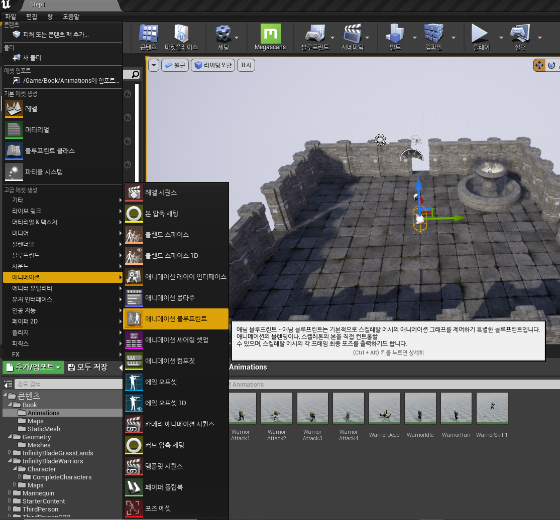 애니메이션 블루프린트를 하나 생성하고 이름은 WarriorAnimBlueprint 라고 한다