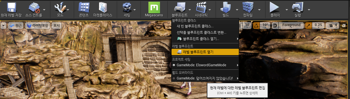상단에서 레벨 블루프린트 열기에서 블루프린트를연다