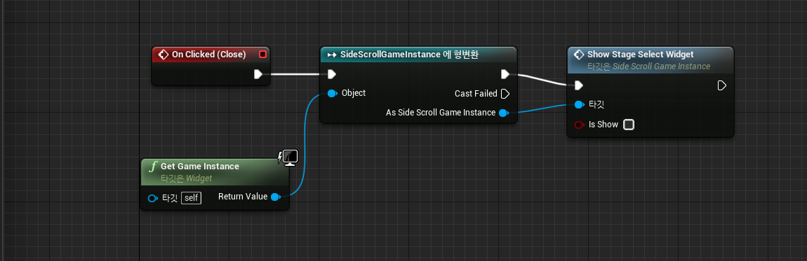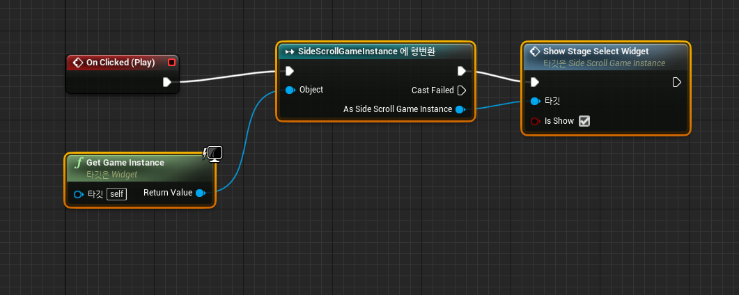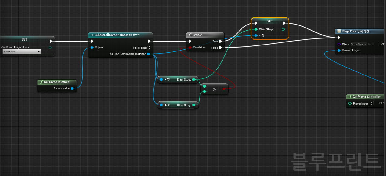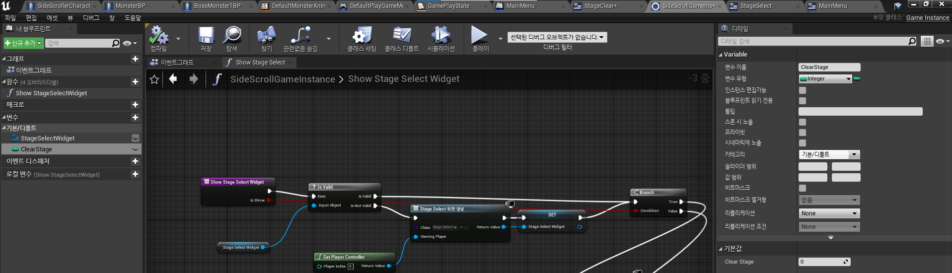 //그리고 DefaultPlayGameMode에서 스테이지를 클리어하면 SideScrollGameInstance의 변수인 Clear Stage의 값을 +1