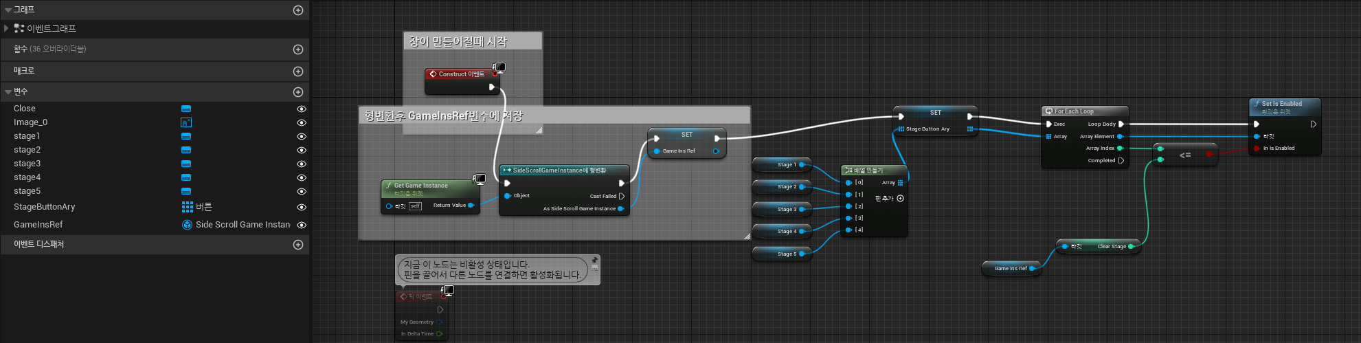 클리어한 스테이지 만큼 버튼이 활성화 되도록 노드를 연결한다.