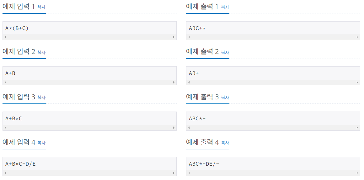 이러한 사실을 알고 중위 표기식이 주어졌을 때 후위 표기식으로 고치는 프로그램을 작성하시오