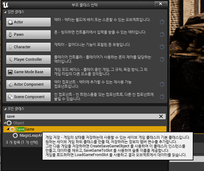 블루프린트 생성 -> SaveGame 을 선택하고 이름은 다음과 같이 한다